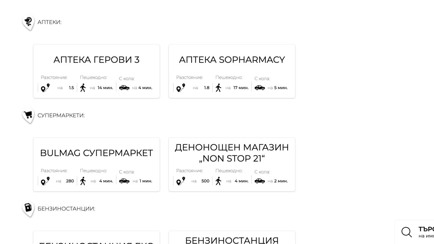 Бяха интегрирани активни карти на региони с връзка към Google Maps с нанесени съответните обществени обекти в близост до сградите.