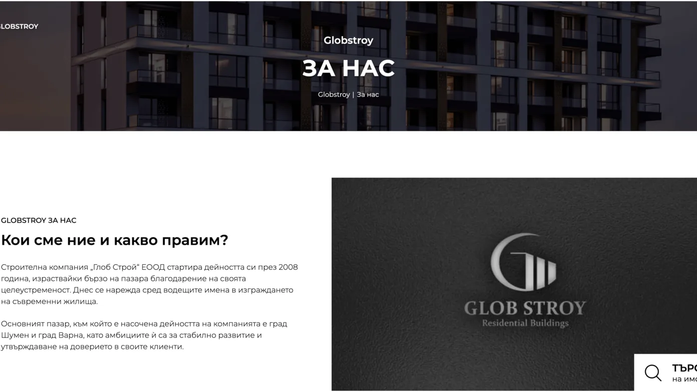 „Глобстрой“ е приоритетен клиент и партньор на Web Factor от 2017г. Водещата строителна компания се довери на екипа ни за общо 8 успешно завършени проекта. Сред тях са корпоративни страници и уеб сайтове за продажба на различни по мащаб жилищни сгради.
