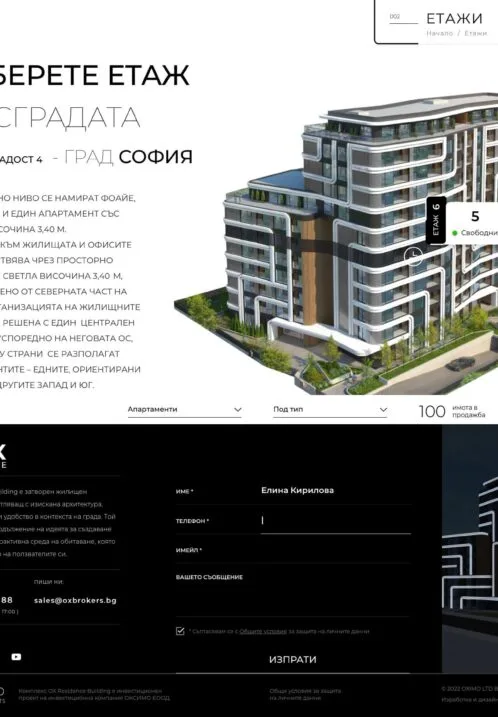Със създаването на този уебсайт, ние улеснихме потенциалните купувачи да разгледат различните жилищни възможности, които Ox Residence предлага, да получат подробна информация за удобствата и услугите, и да визуализират своя бъдещ дом чрез интерактивни галерии и виртуални обиколки.Ox Residence Сграда ново строителство