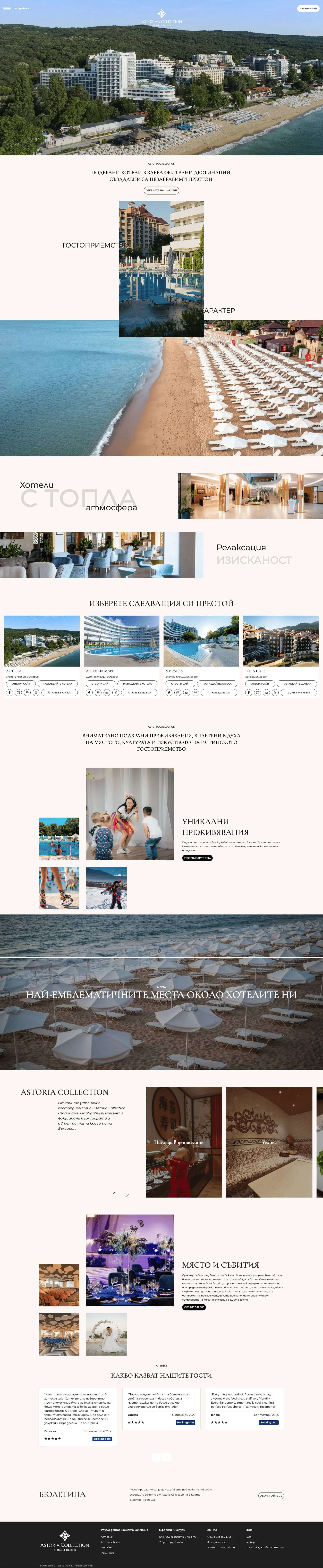 Уеб сайт за Astoria Collection – Колекция от луксозни хотели в България
