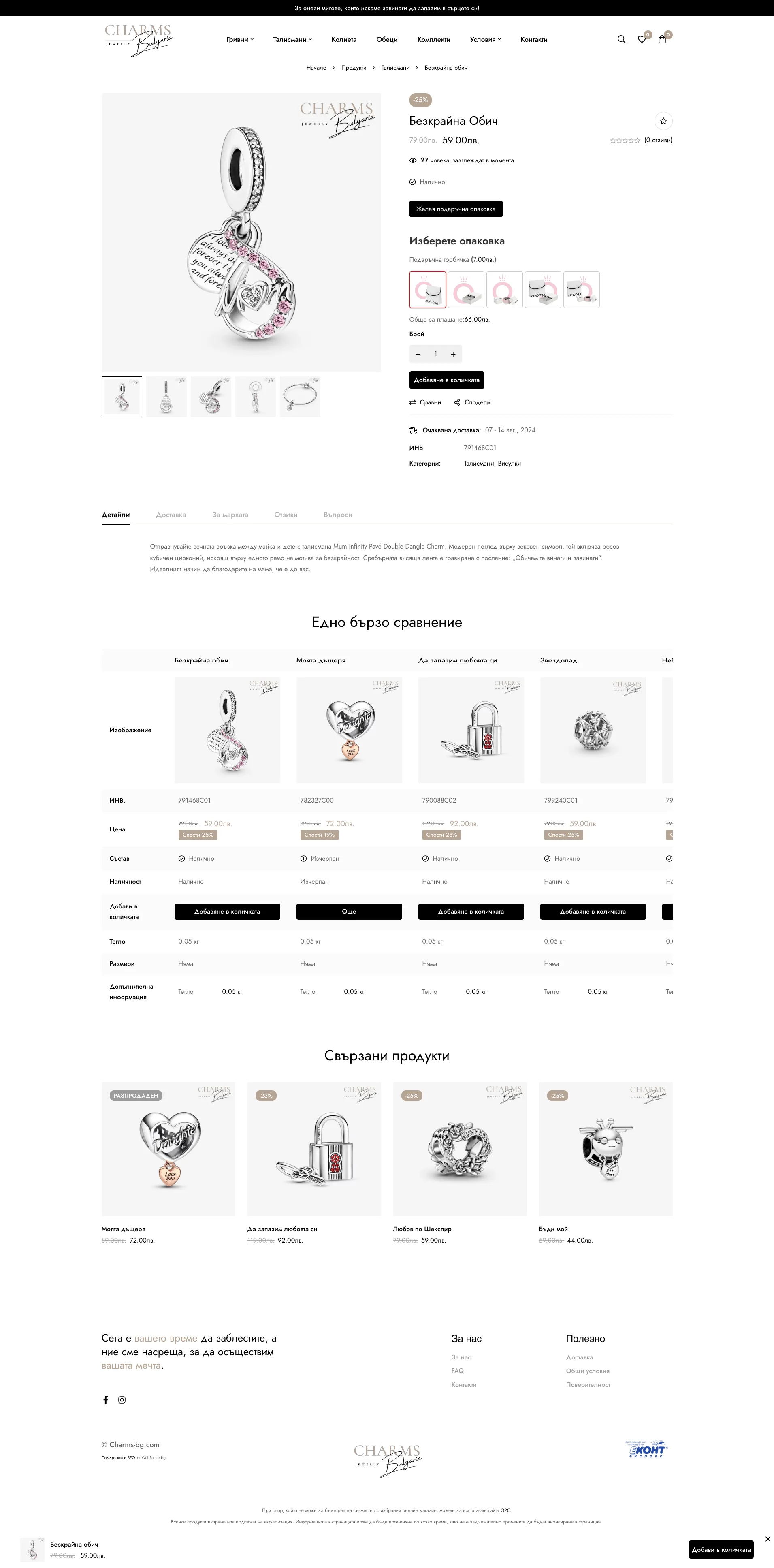 Charms: Блясъкът на Успеха в Онлайн Търговията с Бижута Charms е не просто онлайн магазин за бижута – това е виртуално бижутерско изживяване, което обединява елегантността на дизайна с практичността на модерната технология. Сайтът впечатлява със своя изчистен и стилен интерфейс, предоставяйки на клиентите възможността да открият перфектното бижу чрез интуитивни филтри и разнообразие от продуктови опции. Вградихме удобни и сигурни методи за плащане, които гарантират безпроблемно и безопасно пазаруване. Благодарение на внимателно разработената SEO стратегия, Charms зае водещи позиции в търсачките за България, превръщайки се в предпочитан избор за любителите на бижутата. Резултатите говорят сами: повишен трафик, успешни продажби и доволни клиенти. Ако и вие мечтаете за онлайн магазин, който не само изглежда прекрасно, но и носи реални резултати, ние сме тук, за да създадем вашия успех. Свържете се с нас и да направим първата крачка към вашия онлайн бизнес!