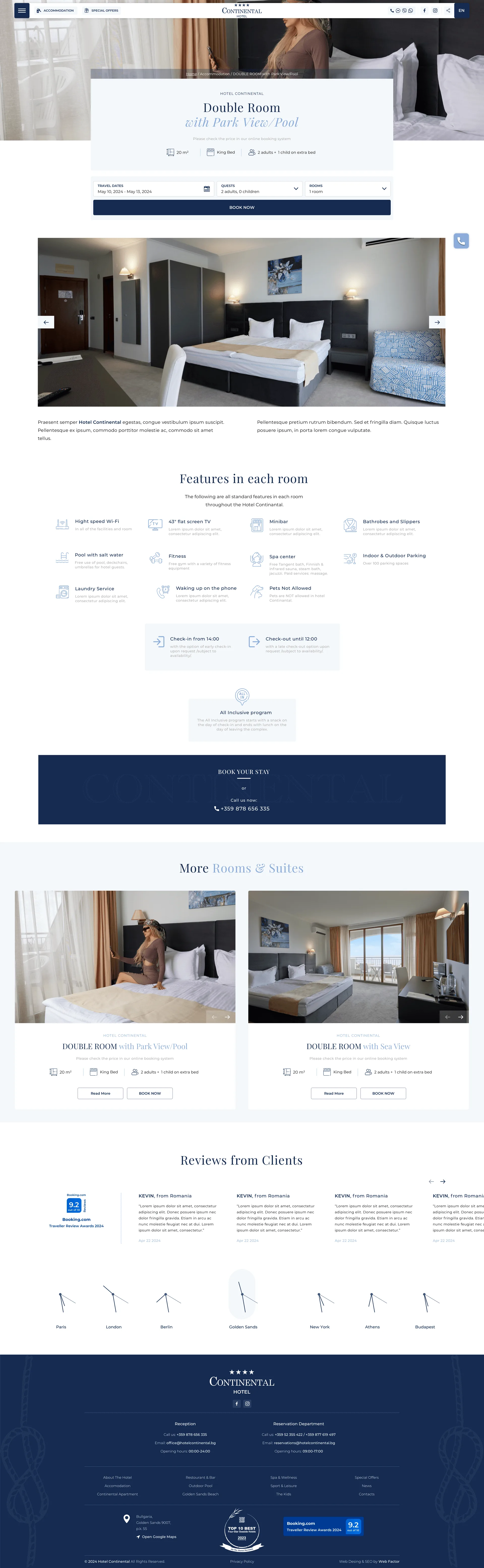 Hotel Continental: Награден Лукс, Представен с Изключителен Уебсайт Hotel Continental заслужено получава признание за най-добър четиризвезден хотел в България за втора поредна година. Успехът на хотела е отразен и във виртуалното пространство чрез модерен, бърз и безупречно изграден уебсайт, който подчертава неговия клас и внимание към детайла. Сайтът предлага изчистен дизайн и лесна навигация, съчетавайки стил и функционалност. Всеки аспект от хотелското изживяване е представен по най-добрия начин, позволявайки на посетителите да се потопят в атмосферата на лукса и комфорта още преди да резервират престоя си. Hotel Continental и неговият уебсайт са пример за това как комбинацията от качество и иновация може да изведе бизнеса на върха. Ако искате вашият хотел да блести и онлайн, ние сме тук, за да го постигнем заедно. Свържете се с нас и нека създадем дигиталния облик, който вашият бранд заслужава!