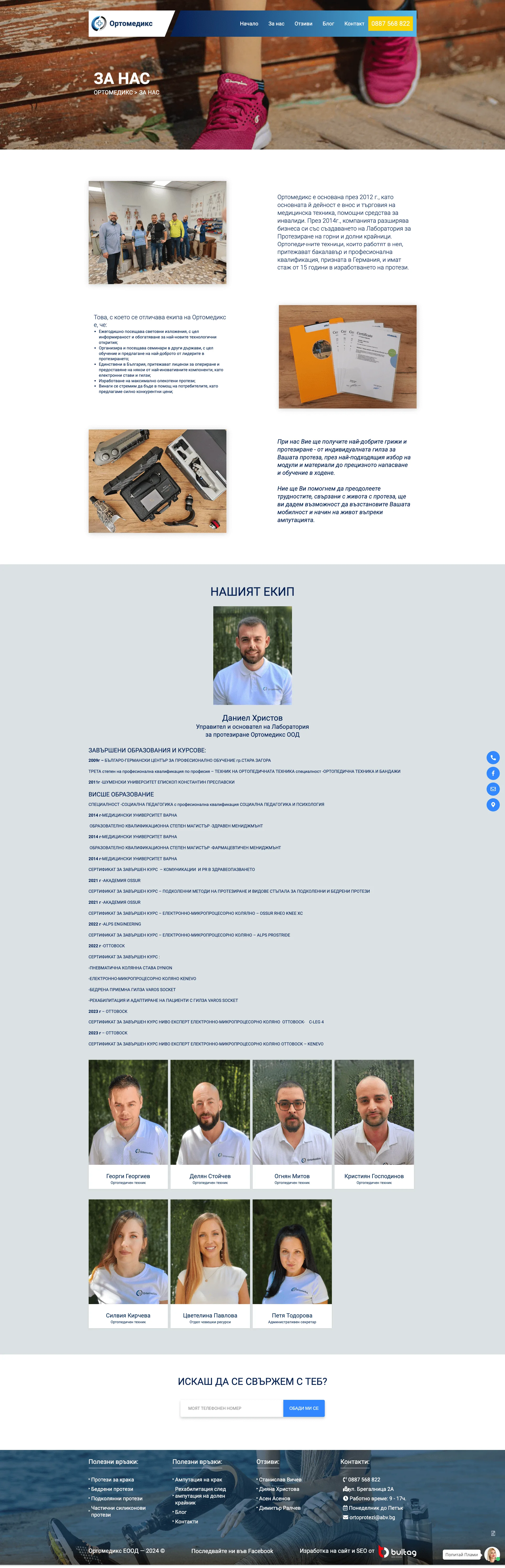 В сайта ще намерите професионално отношение. От индивидуално изработената гилза за вашата протеза, подбор на най-подходящите модули и материали, прецизното напасване и обучение в ходене. Ще получите помощ как да преодолеете предизвикателствата, свързани с ежедневието с протеза. Възползвайте се от конкурентните цени.